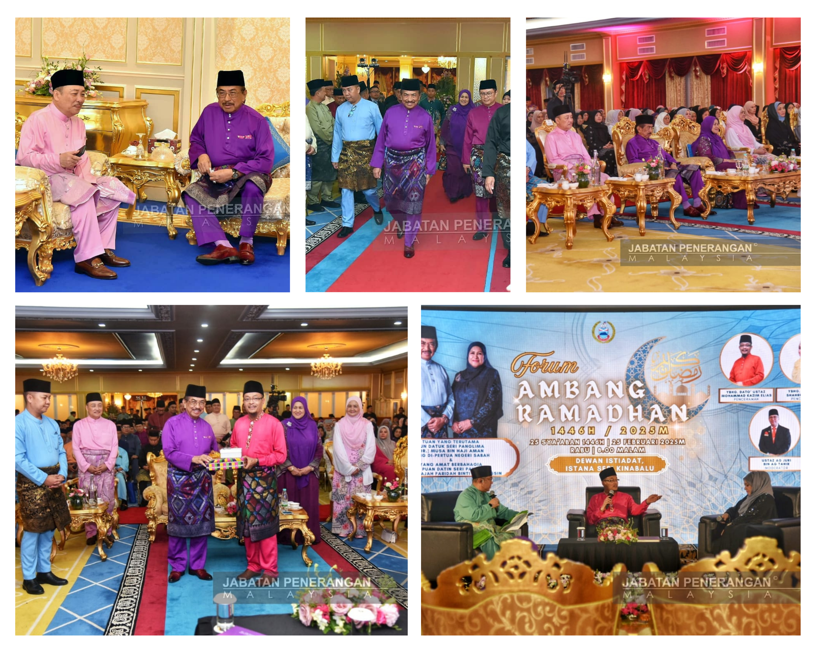 Yang di-Pertua Negeri Sabah Tun Musa Aman dan Toh Puan Faridah Tussin menghadiri Forum Ambang Ramadan 1446H/2025. SUMBER DARI PENERANGAN