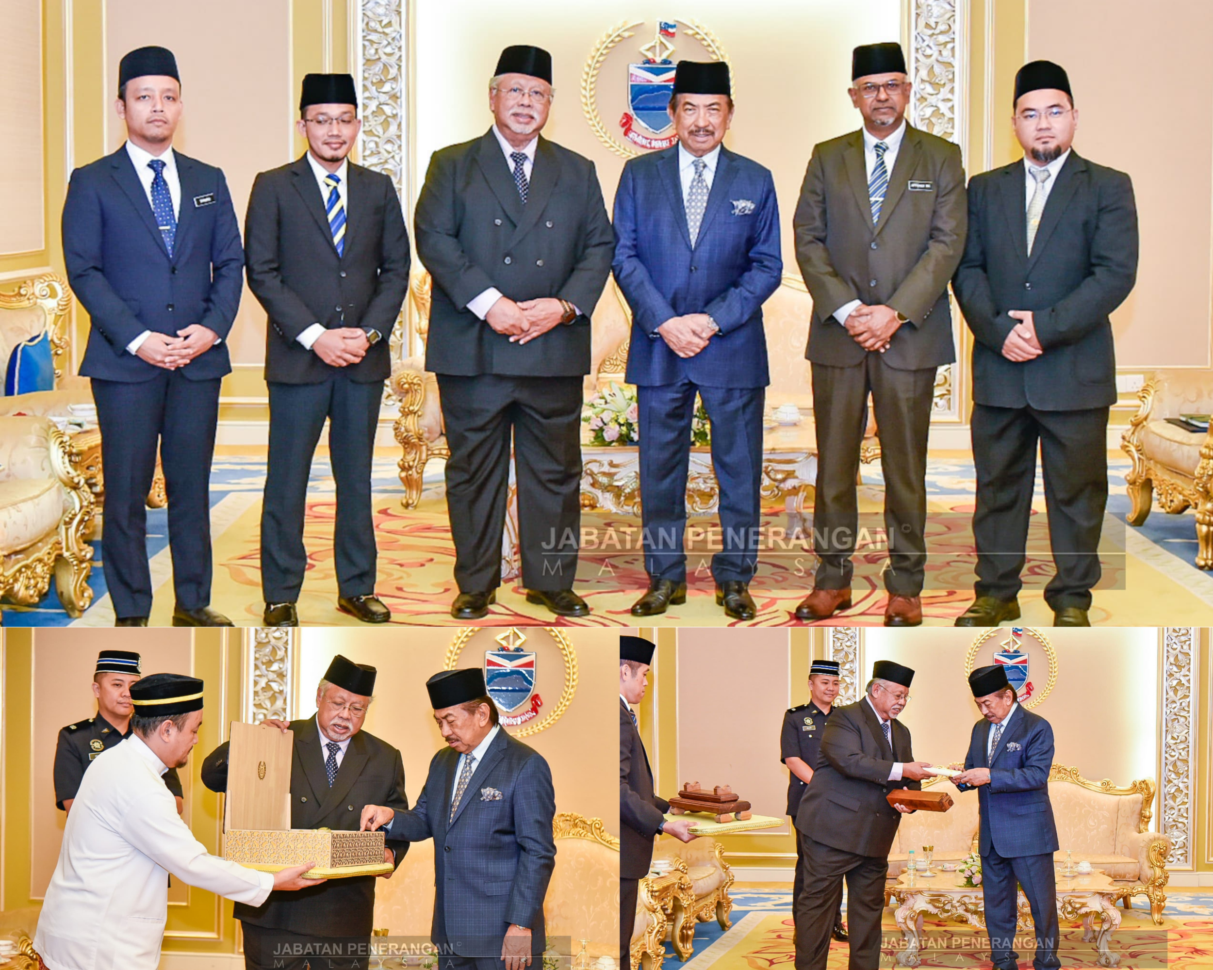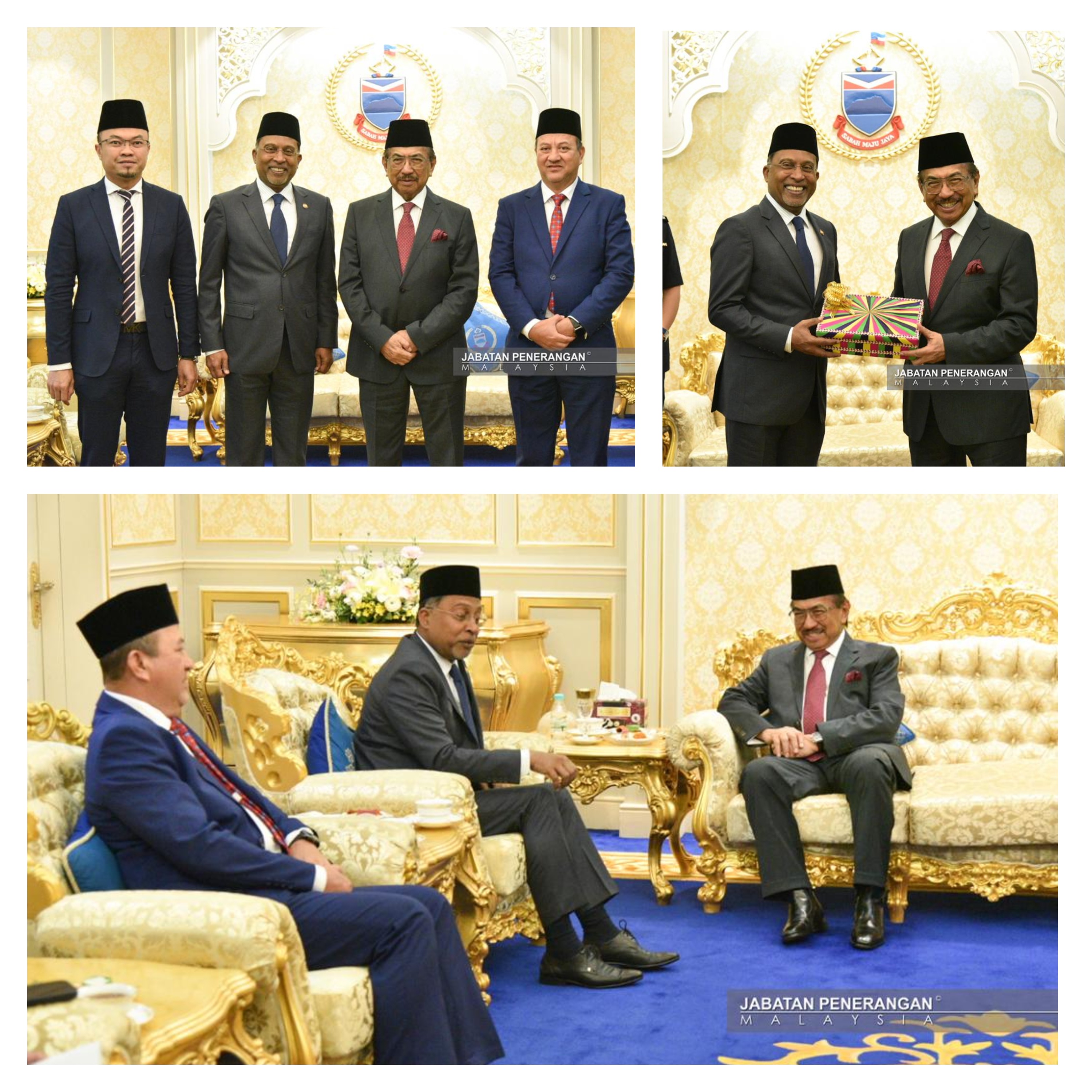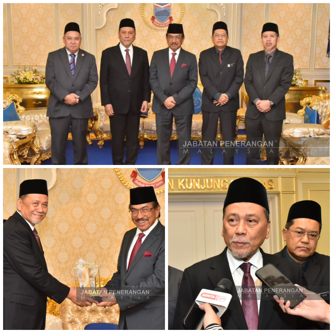 Yang di-Pertua Negeri Sabah Tun Musa Aman menerima kunjungan hormat Timbalan Ketua Menteri III, Datuk Ir. Shahelmey Yahya dan rombongan di Istana Seri Kinabalu. SUMBER DARI PENERANGAN
