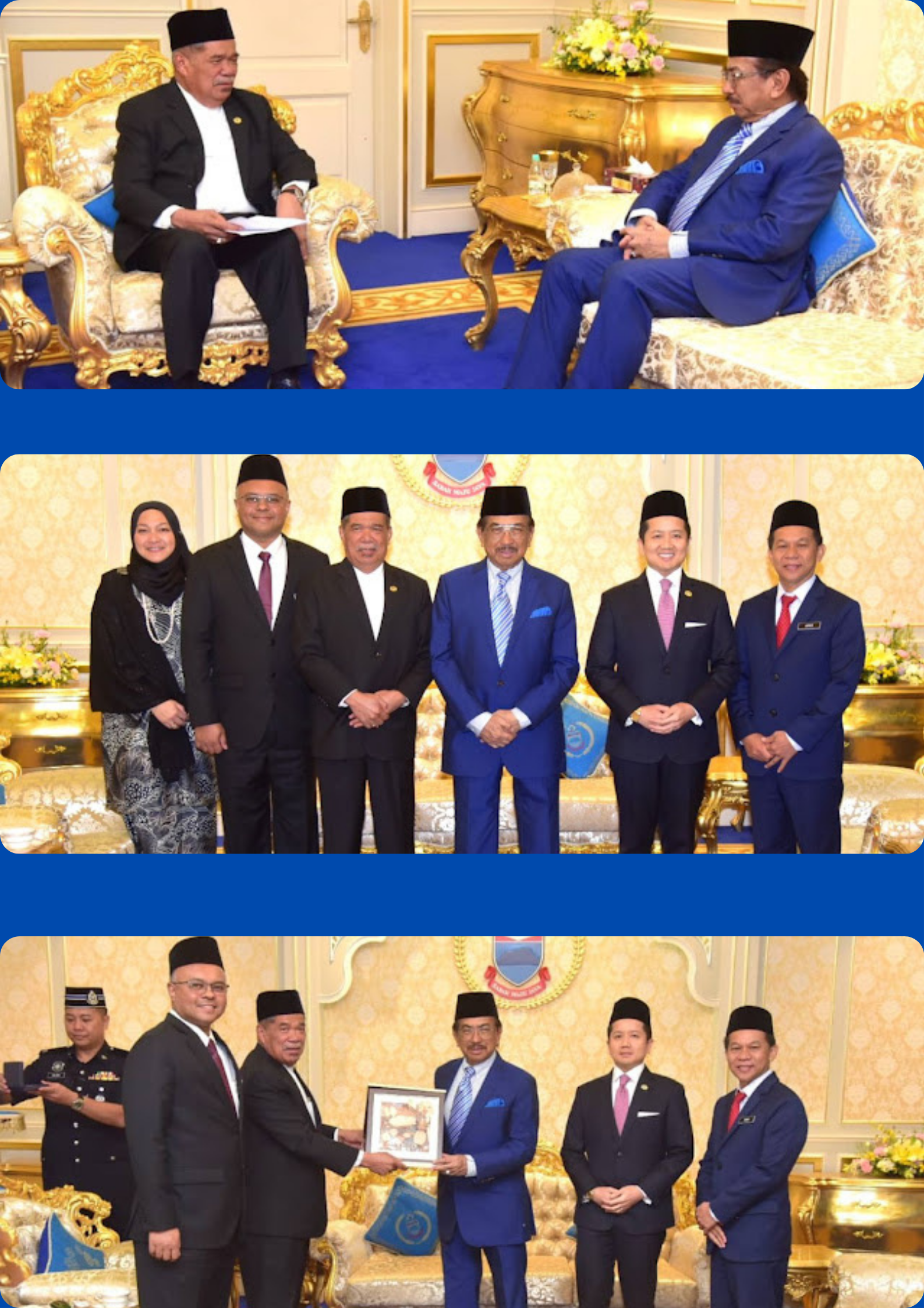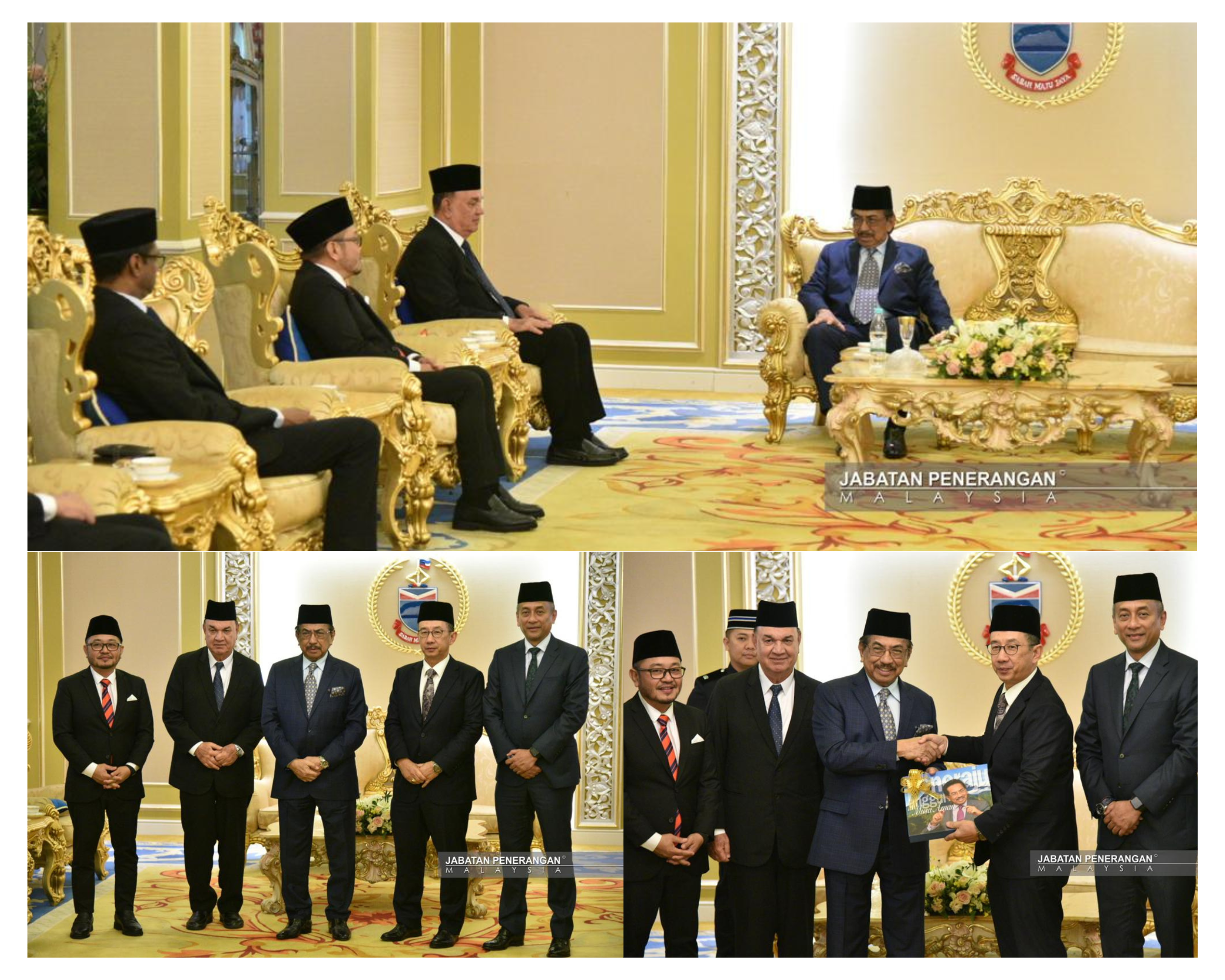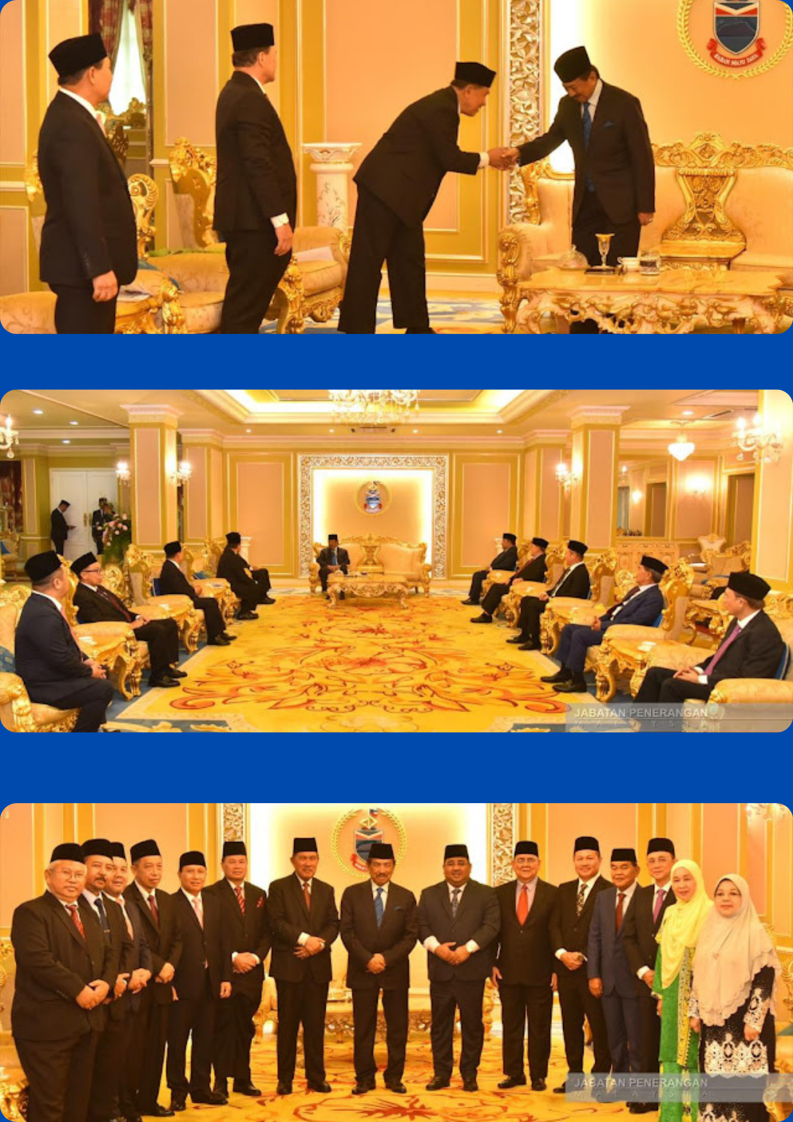 Yang di-Pertua Negeri Sabah Tun Musa Aman menerima kunjungan hormat Timbalan Ketua Menteri III, Datuk Ir. Shahelmey Yahya dan rombongan di Istana Seri Kinabalu. SUMBER DARI PENERANGAN