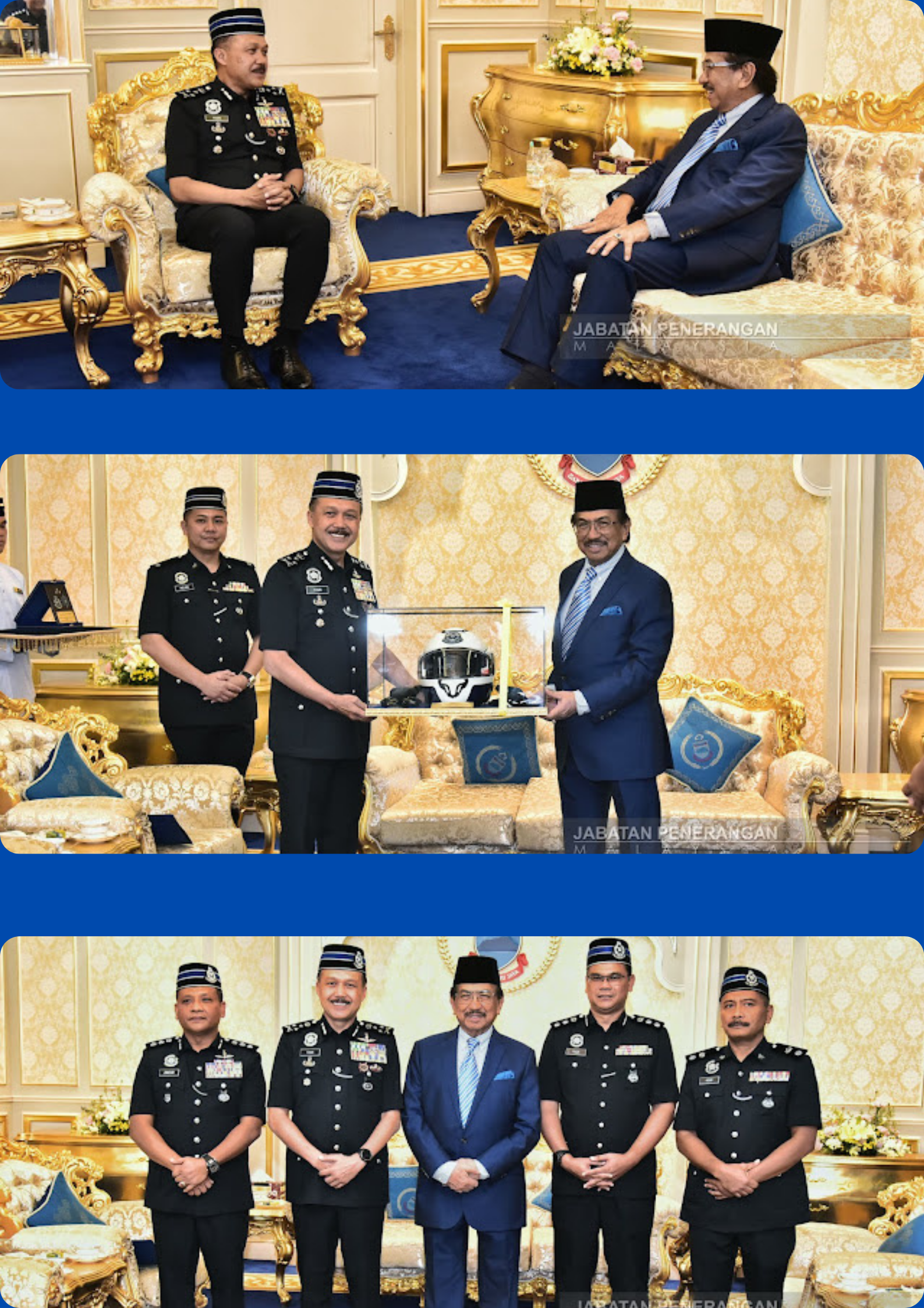 Yang di-Pertua Negeri, Tun Musa Aman menerima kunjungan hormat Rombongan Pengarah Jabatan Siasatan dan Penguatkuasaan Trafik (JSPT) Polis Diraja Malaysia (PDRM) Bukit Aman, Datuk Sri Mohd Yusri Hassan Basri SUMBER DARI PENERANGAN