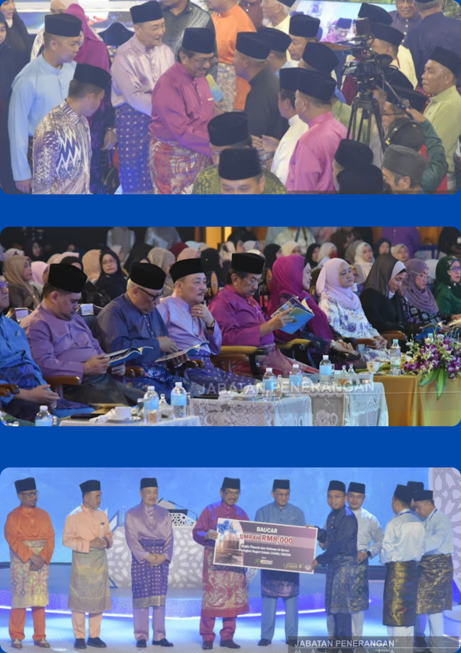 Мajlis Penutupan dan Penyampaian Hadiah Majlis Tilawah dan Hafazan Al-Quran (MTHQ) disempurnakan dengan kehadiran Yang di-Pertua Negeri Sabah, Tun Musa Aman dan turut diserikan dengan kehadiran Toh Puan Faridah Tussin.